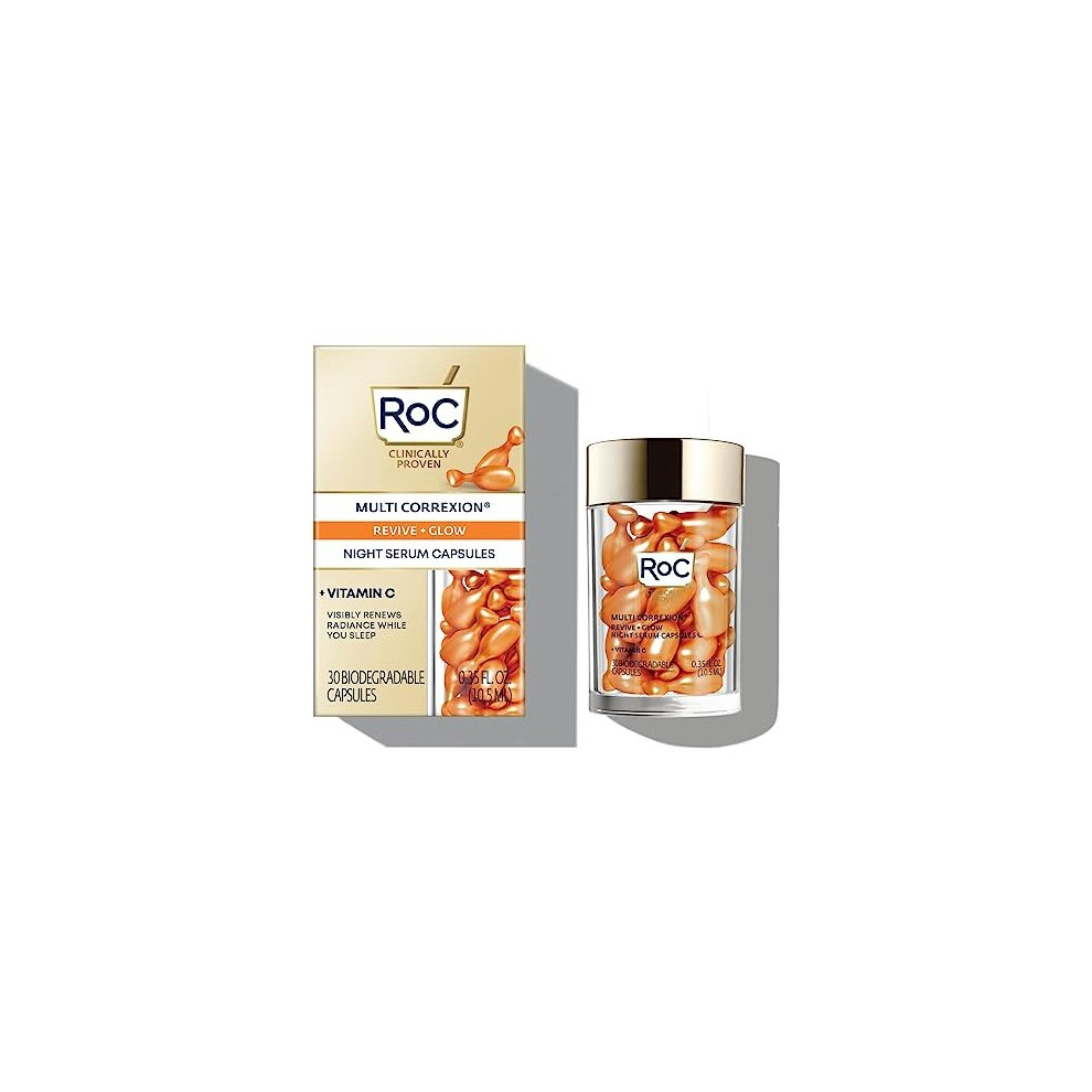Roc - Multi Correxion Revive + Glow Night Serum Capsules - Anti-Wrinkle And Ageing - Vitamin C - Reduction Of Dark Spots - 30 Capsules