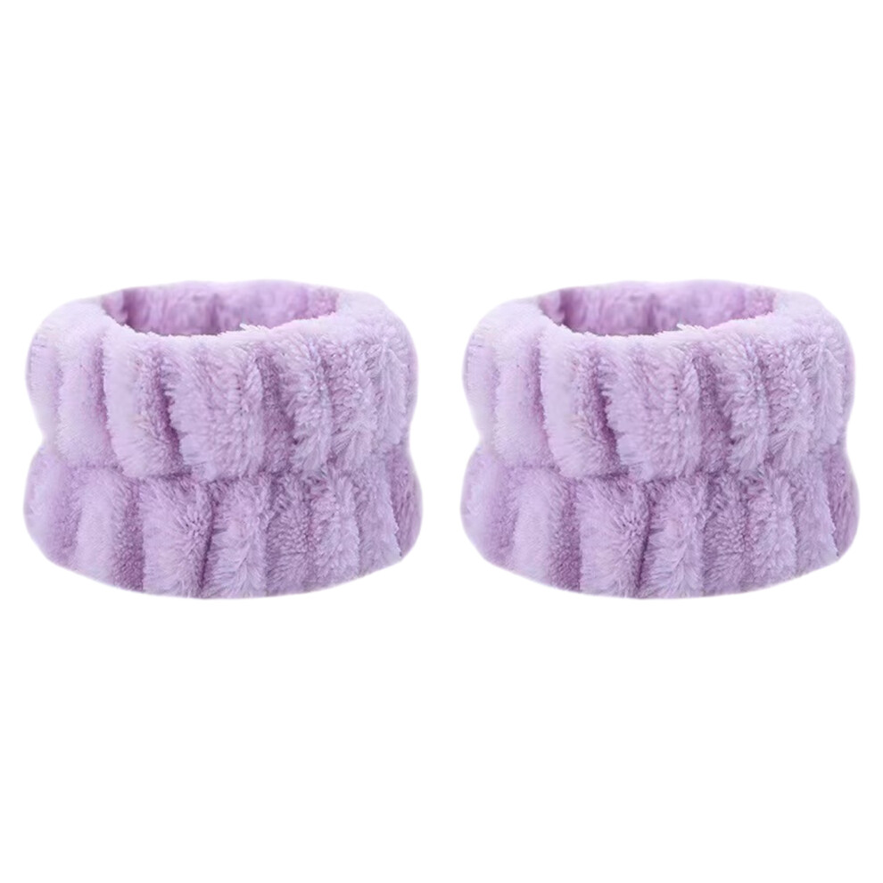 (Purple wristband one pair) Soft Purple Plush Headband for Women, Skin Care