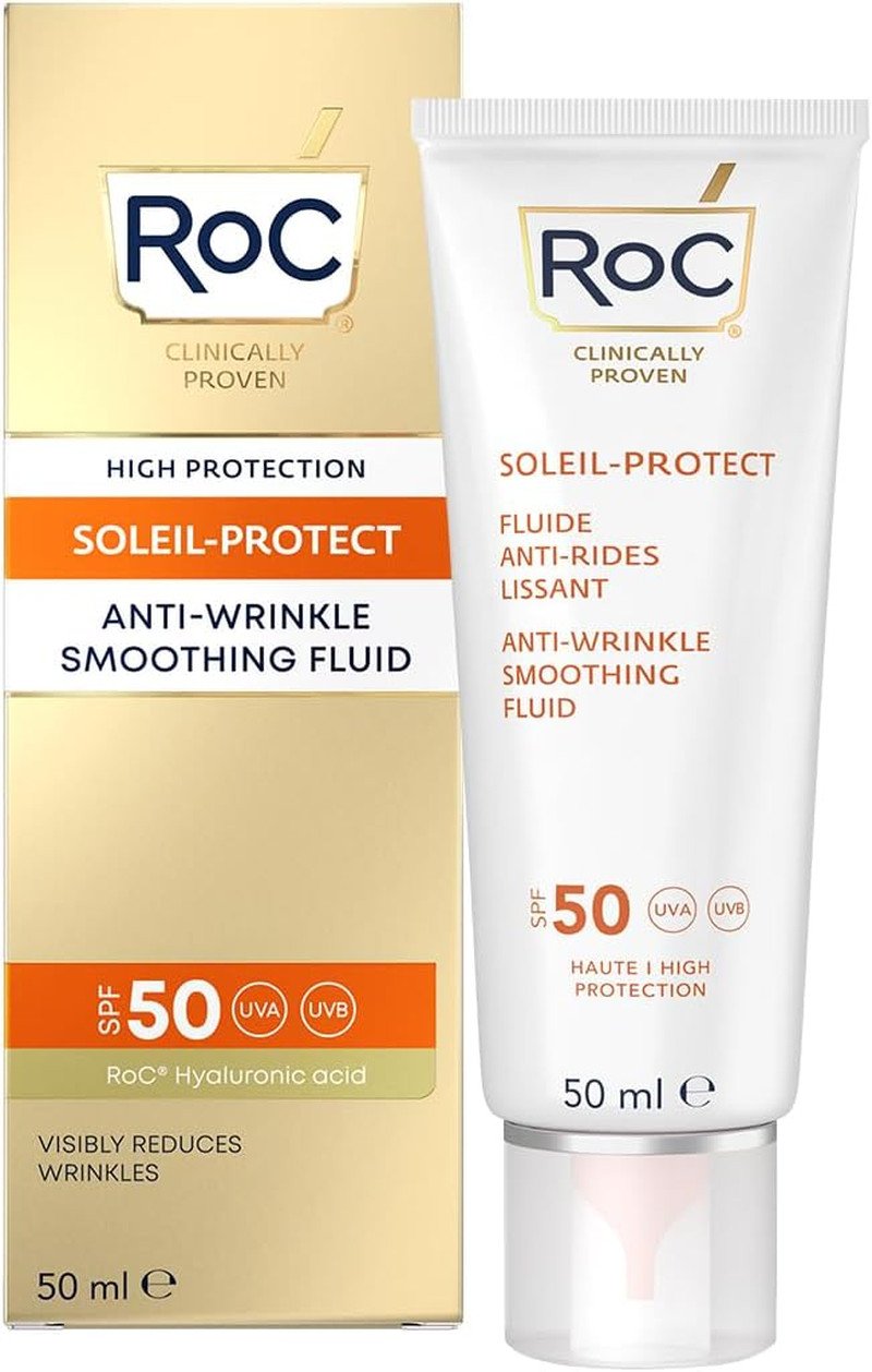 RoC Soleil-Protect Anti-Wrinkle Smoothing Fluid SPF50+ | Moisturiser with Hyalu