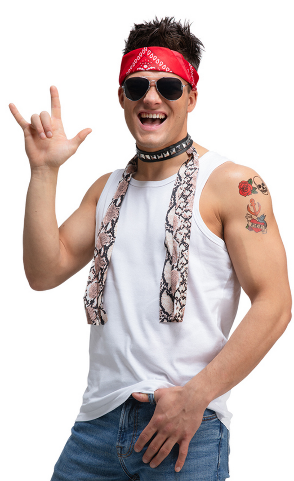 4pc Punk Rocker Set 80s 90s Rock n Roll Mens Ladies Fancy Dress Kit Glasses Band