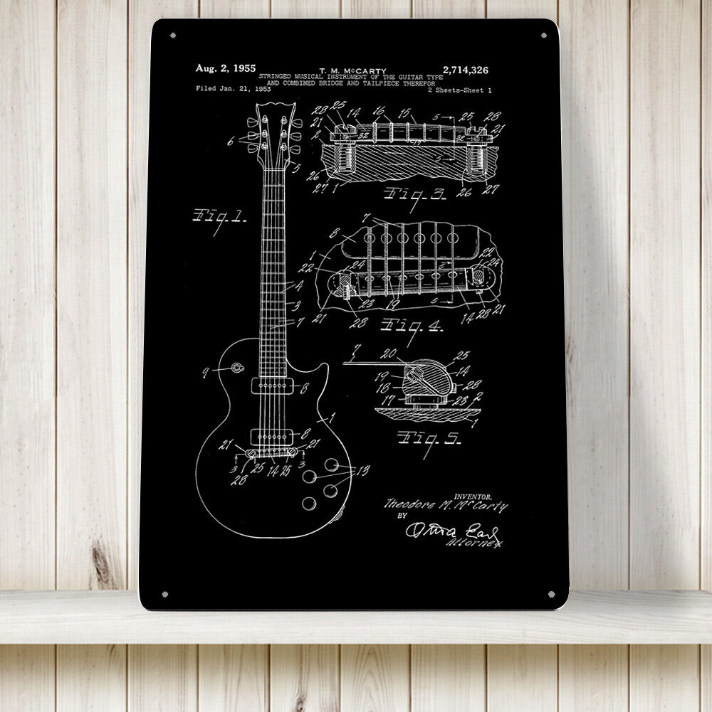Electric Guitar Patent illustration, music, rock band A4 metal plaque decor sign