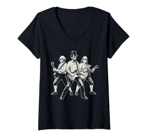 Women's Presidents Playing Guitar Funny Rock Band July 4th Vintage V-Neck T-Shirt