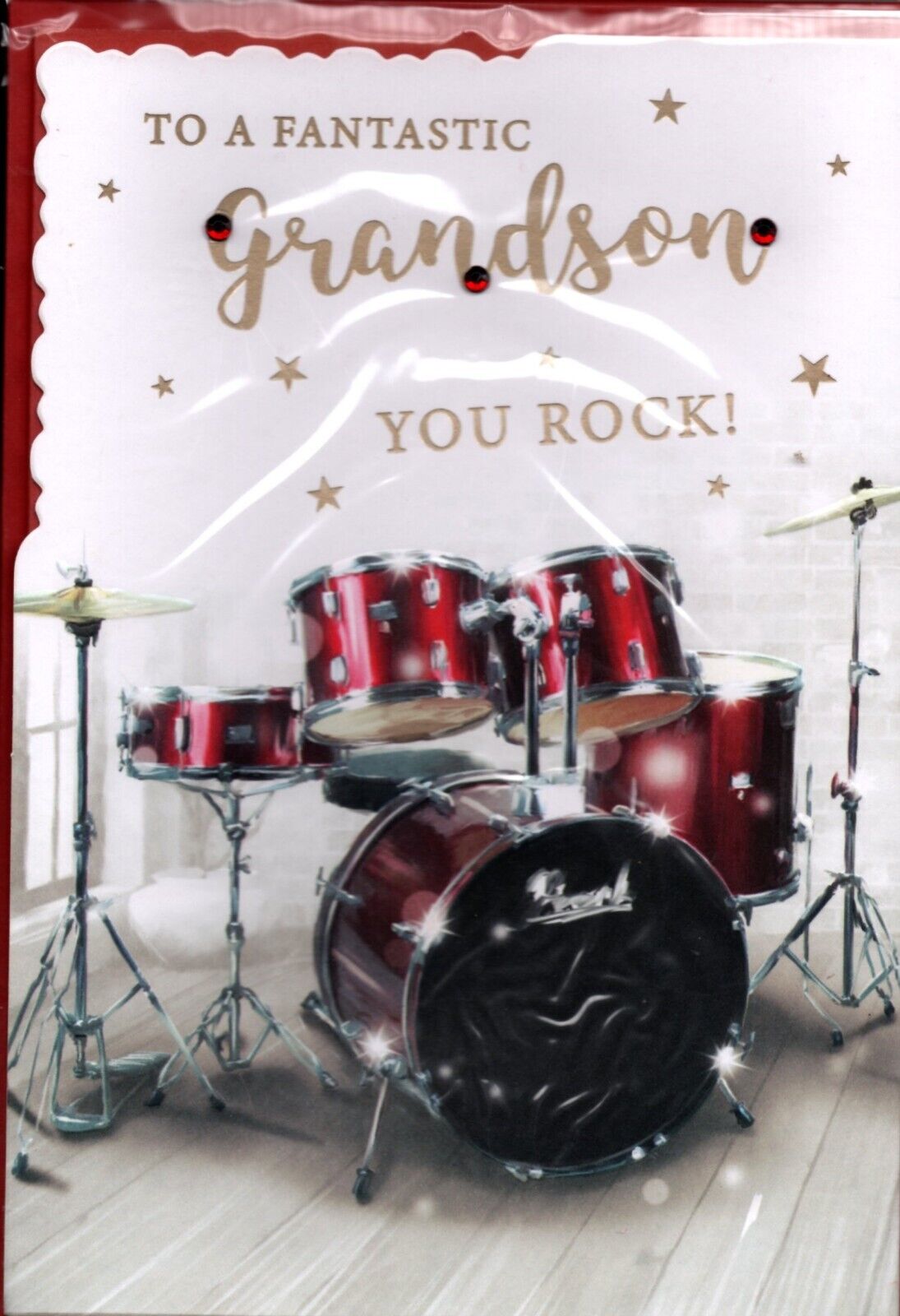 Fantastic Grandson Birthday Card Rock Band Theme 4 pages Lovely Verse 7"x5"