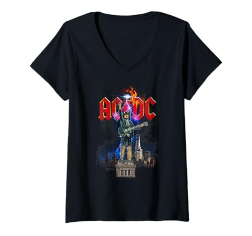 Womens AC/DC Rock Music Band Angus NYC Lightning V-Neck T-Shirt