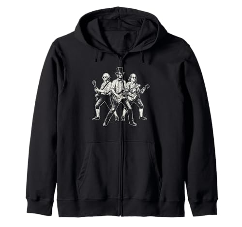 Presidents Playing Guitar Funny Rock Band July 4th Vintage Zip Hoodie