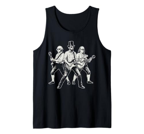 Presidents Playing Guitar Funny Rock Band July 4th Vintage Tank Top