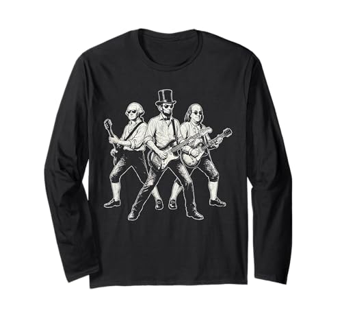 Presidents Playing Guitar Funny Rock Band July 4th Vintage Long Sleeve T-Shirt