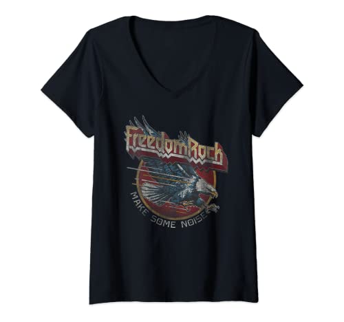 Womens Freedom Rock USA Eagle Vintage Retro Band Concert 4th July V-Neck T-Shirt