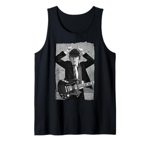 AC/DC Rock Music Band Angus Young Distressed Photo Tank Top