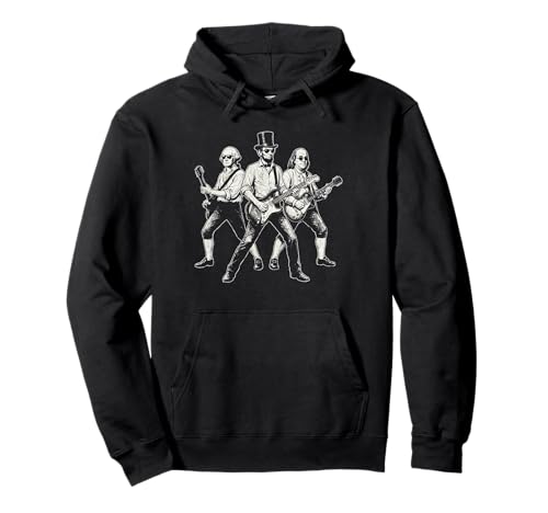 Presidents Playing Guitar Funny Rock Band July 4th Vintage Pullover Hoodie