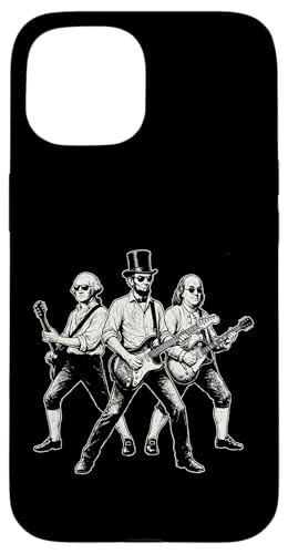 Presidents Playing Guitar Funny Rock Band July 4th Vintage Case for iPhone 15 Plus