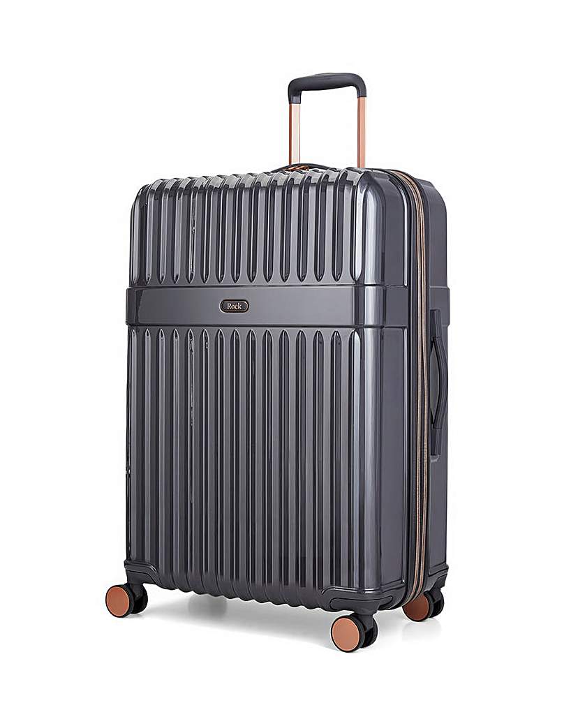 Rock Lisbon Large Hardshell Suitcase Lightweight Luggage in Grey
