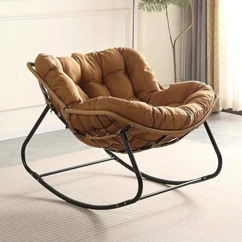 YUANYINSM Outdoor Papasan Chair, Oversized Outdoor Rocking Chair with Thick Cushion, Indoor Egg Rocker Lounge Chair, Patio Chairs for Porch Garden Living Room Bedroom (Coffee)