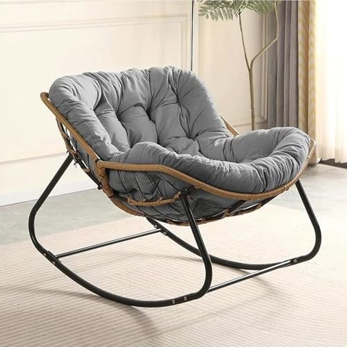 YUANYINSM Outdoor Papasan Chair, Oversized Outdoor Rocking Chair with Thick Cushion, Indoor Egg Rocker Lounge Chair, Patio Chairs for Porch Garden Living Room Bedroom (Dark Gray)