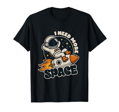 Funny Rocket Design Cartoon Man Astronaut I Need More Space T-Shirt