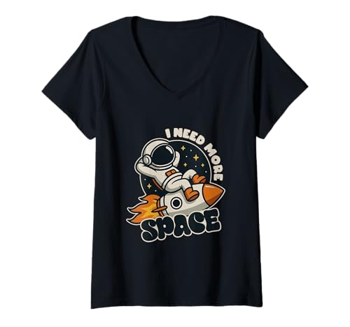 Womens Funny Rocket Design Cartoon Man Astronaut I Need More Space V-Neck T-Shirt