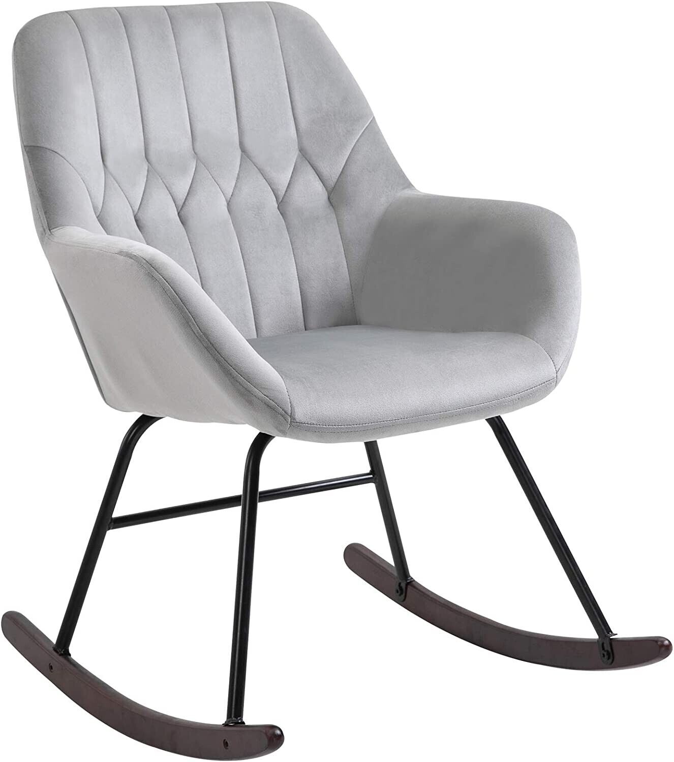 Grey Velvet Rocking Chair Armchair Sponge Padded Nursery Reading Leisure Seat UK