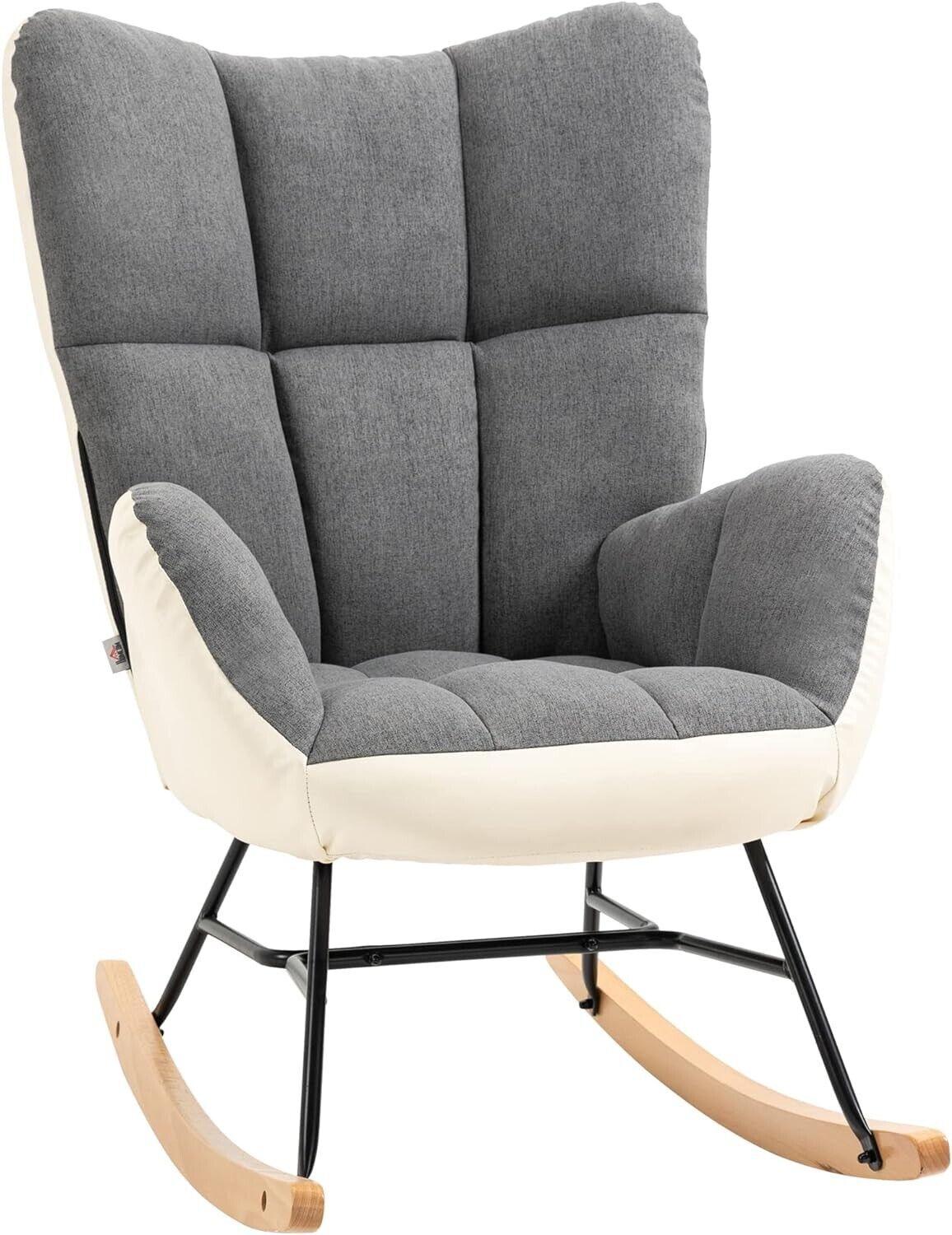 Rocking Nursery Armchair Wingback Leisure Lounge Chair Rocker Seat Cream Grey UK