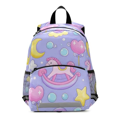 SyXIOP Cute Cartoon Rocking Horse Star Purple Peach Kids Clear Backpack Cute Sturdy Casual Backpack with Adjustable Strap for Kids Students, Age 7-18 mochila de princesas para
