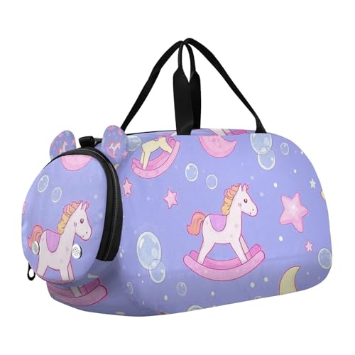 Cute Cartoon Rocking Horse Star Purple Peach Kids Duffel Bag with Shoes Compartment Large Capacity Gymnastics Sports Bag for Boys and Girls