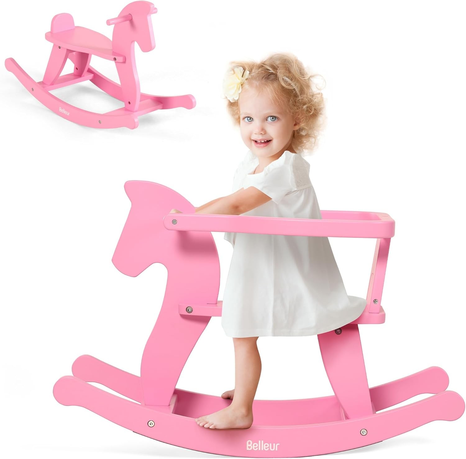 Belleur Rocking Horse for Kids 1-3 Years Old, Wooden Rocking Toy for Toddlers with Removable Fence for Indoor & Outdoor Activities, Baby Horse Riding Toy for Birthday & Visit Gifts