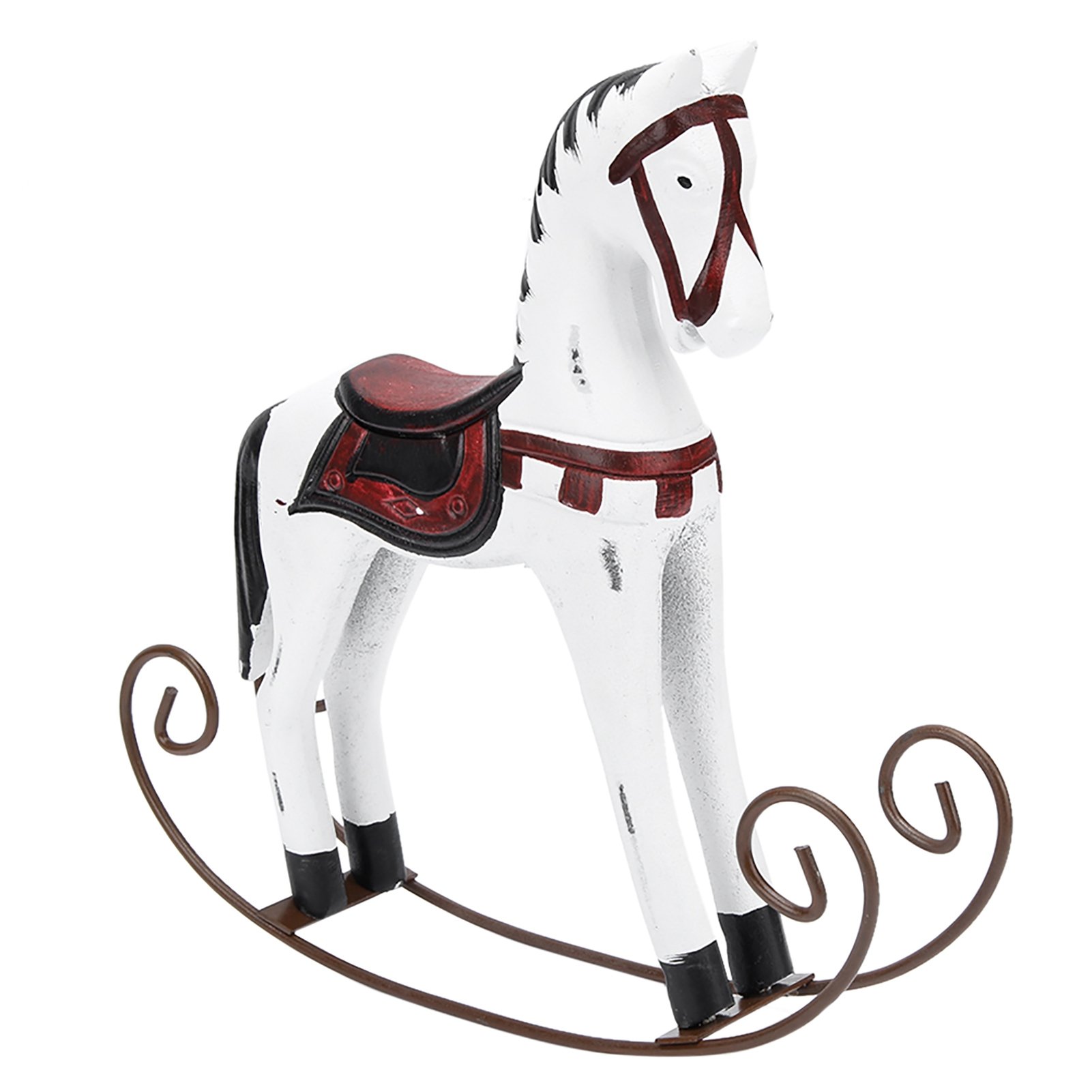 Wooden Handmade Rocking Horse Toy for Kids Carved Painted White Table Decor