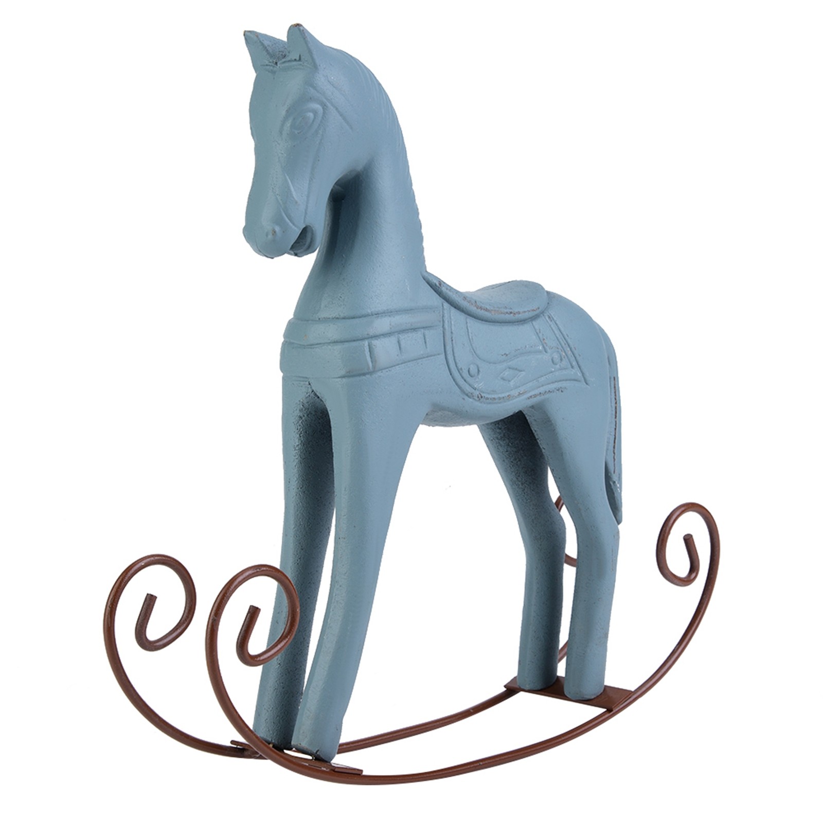 Handmade Light Blue Wooden Rocking Horse Toy for Kids & Decor 23.5cm