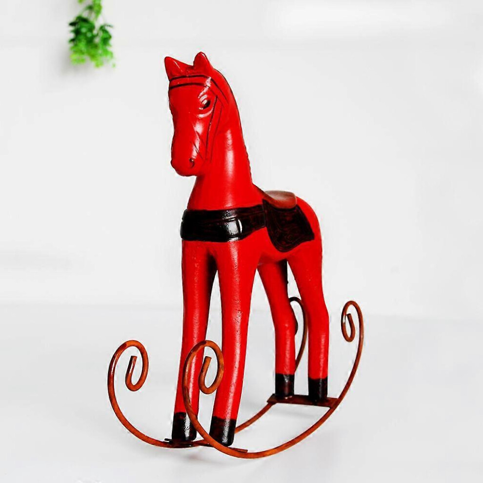 (Red, One size) Wooden Rocking Horse Kids Toys Desktop Ornament Childhood Memory Home Decor - Red
