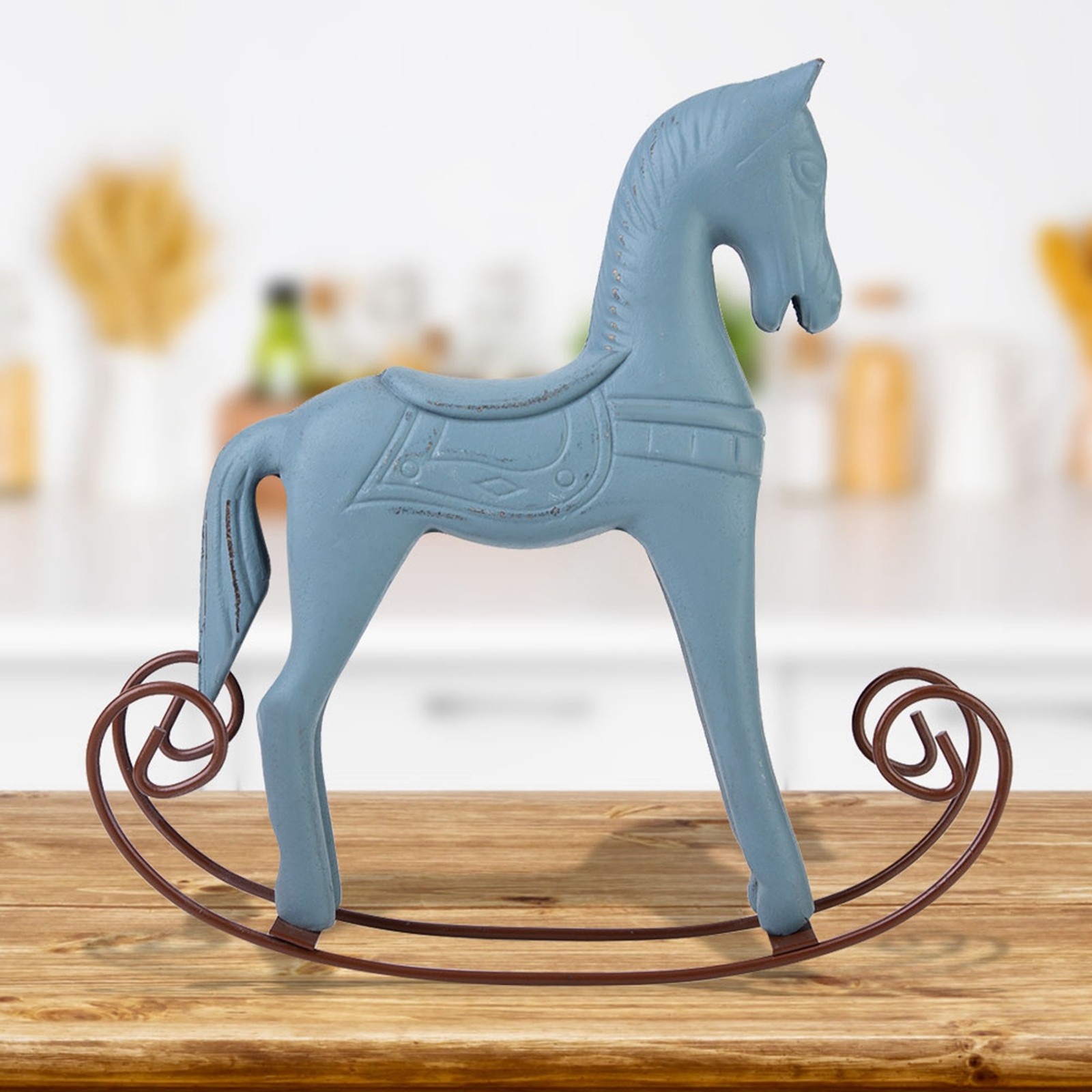 Handmade Wooden Rocking Horse Carved Painted Kids Toy Gift Table Decoration