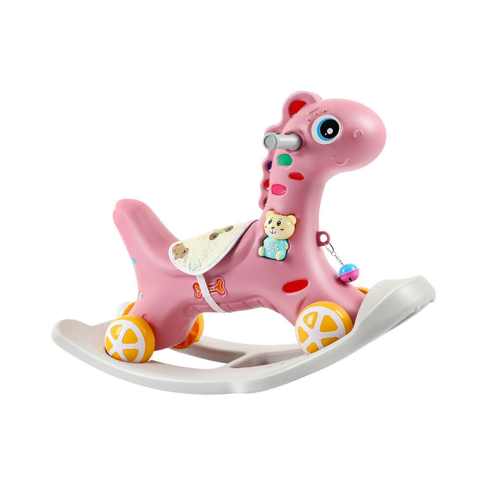 (Pink) 4 in 1 Baby Multifunctional Rocking Horse Toy Rider Rocking Horse Seat Purpose Kids Ride for 1-6 Years Old Baby Toys