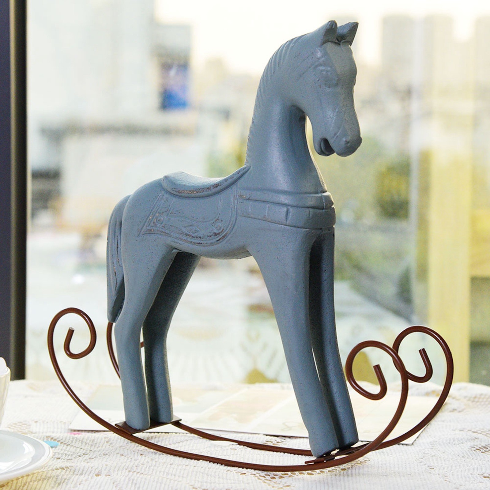 Horse Sculpture Ornament Modern Vivid Cute Resin Rocking Horse Decoration for Kids Room Study Office