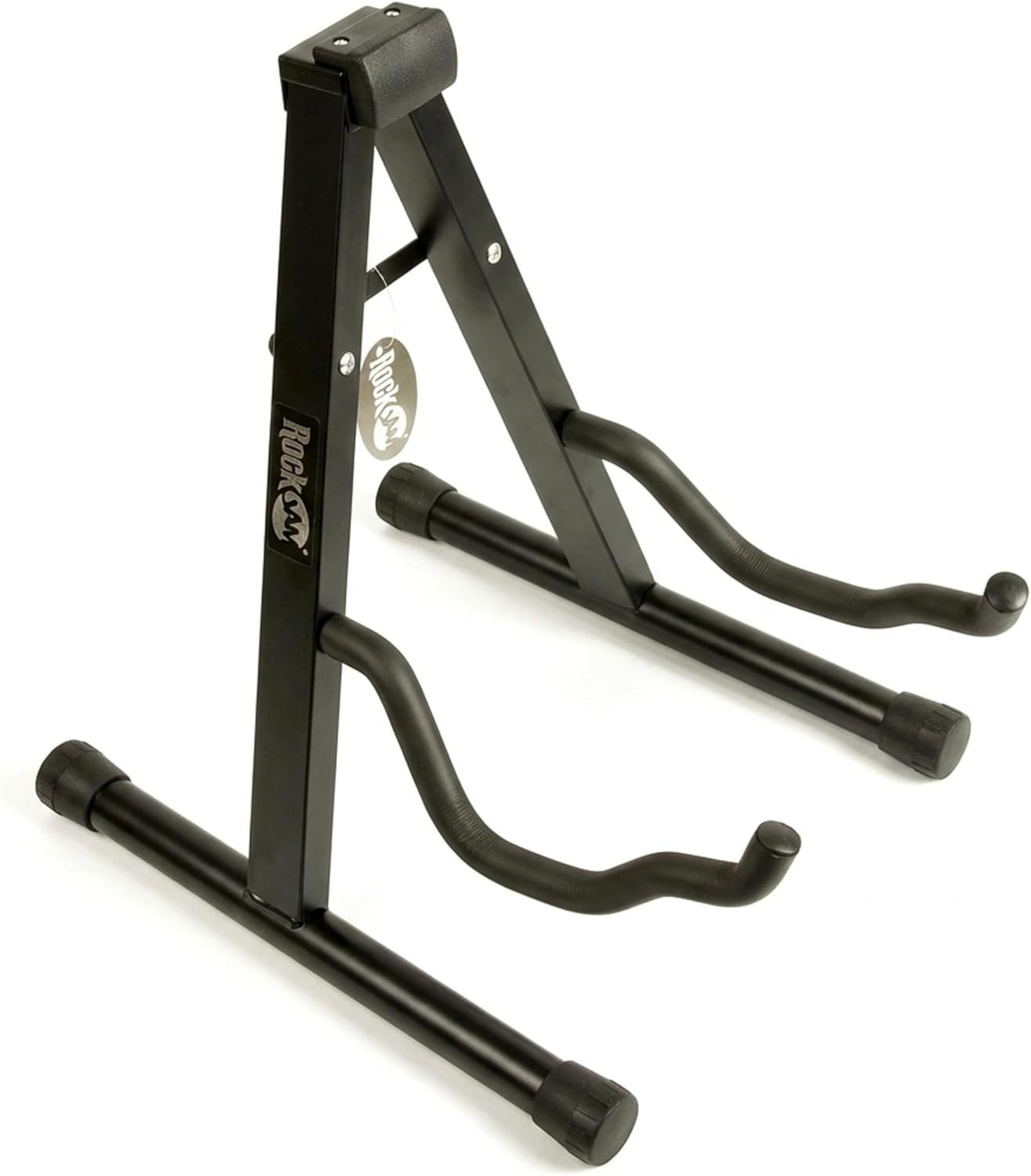 RockJam Foldable A-Frame Guitar Stand with Cushioned Arms and Rubber Feet. Elec