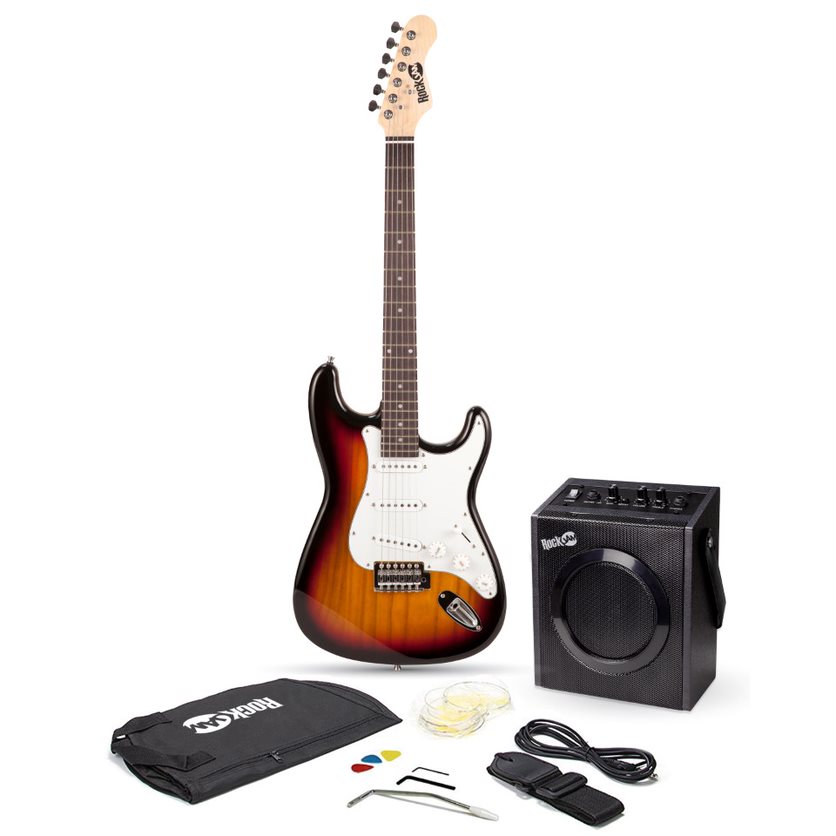 RockJam RJEG02-SK-SB Full Size Electric Guitar Superkit with Guitar Amplifier Guitar Strings Guitar Strap Guitar Bag and Guitar Cable Sunburst