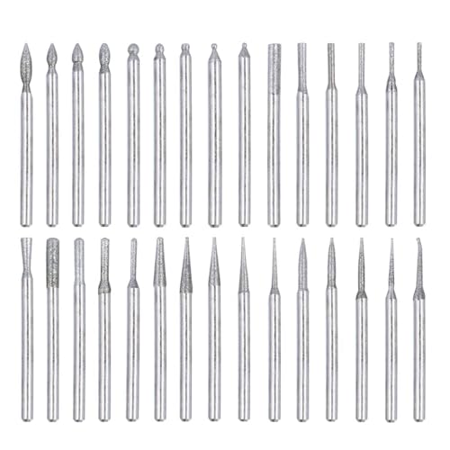 HaoTrade 30PC Diamond Grinding Bit Set, 3mm Diamond Burr Bits Titanium for Ceramics, Carving, Engraving, Grinding, Stone, Rocks, Jewelry, Glass