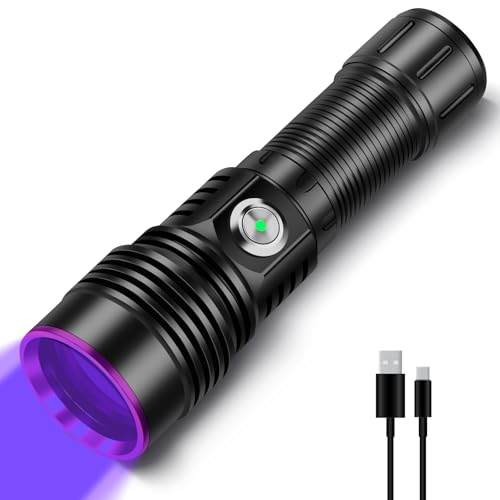 DARKBEAM UV Torch 365nm Black Light Woods Lamp, USB Rechargeable Blacklight LED Ultraviolet Flashlight, Mini Portable Detector for Pet Urine, Uranium Glass, Rocks, Curing Resin, Leak Detection