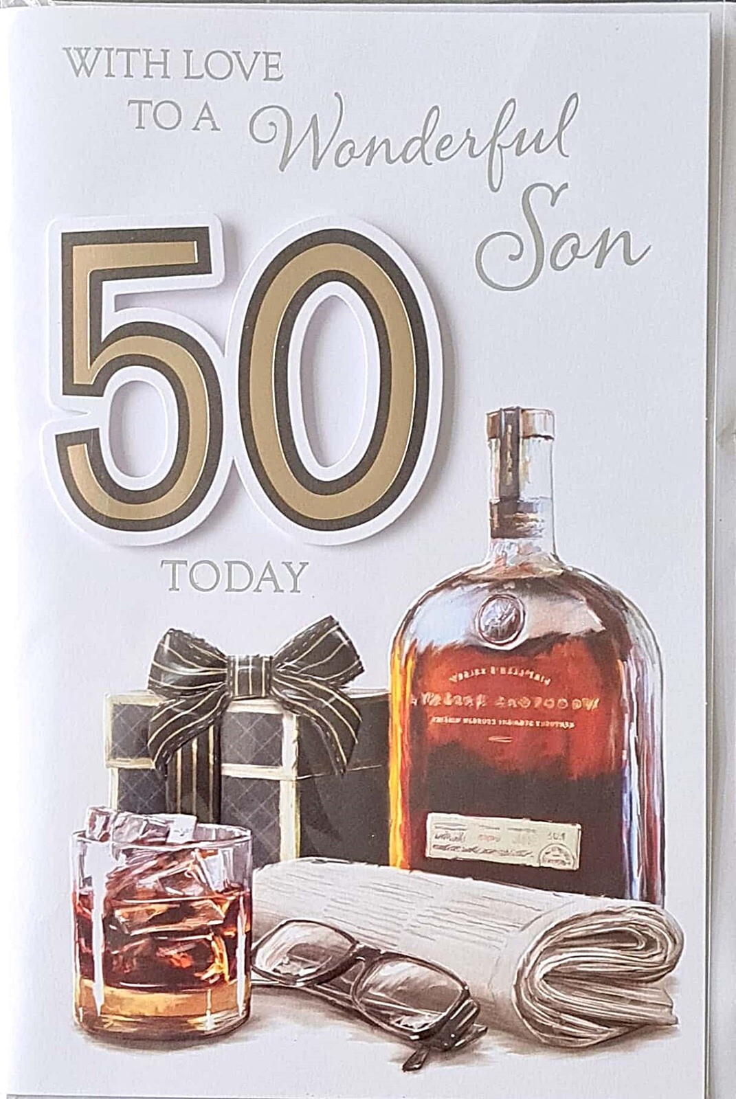 Happy 50th Birthday Card With Love to A Wonderful Son Rocks Glass Scotch Spirit