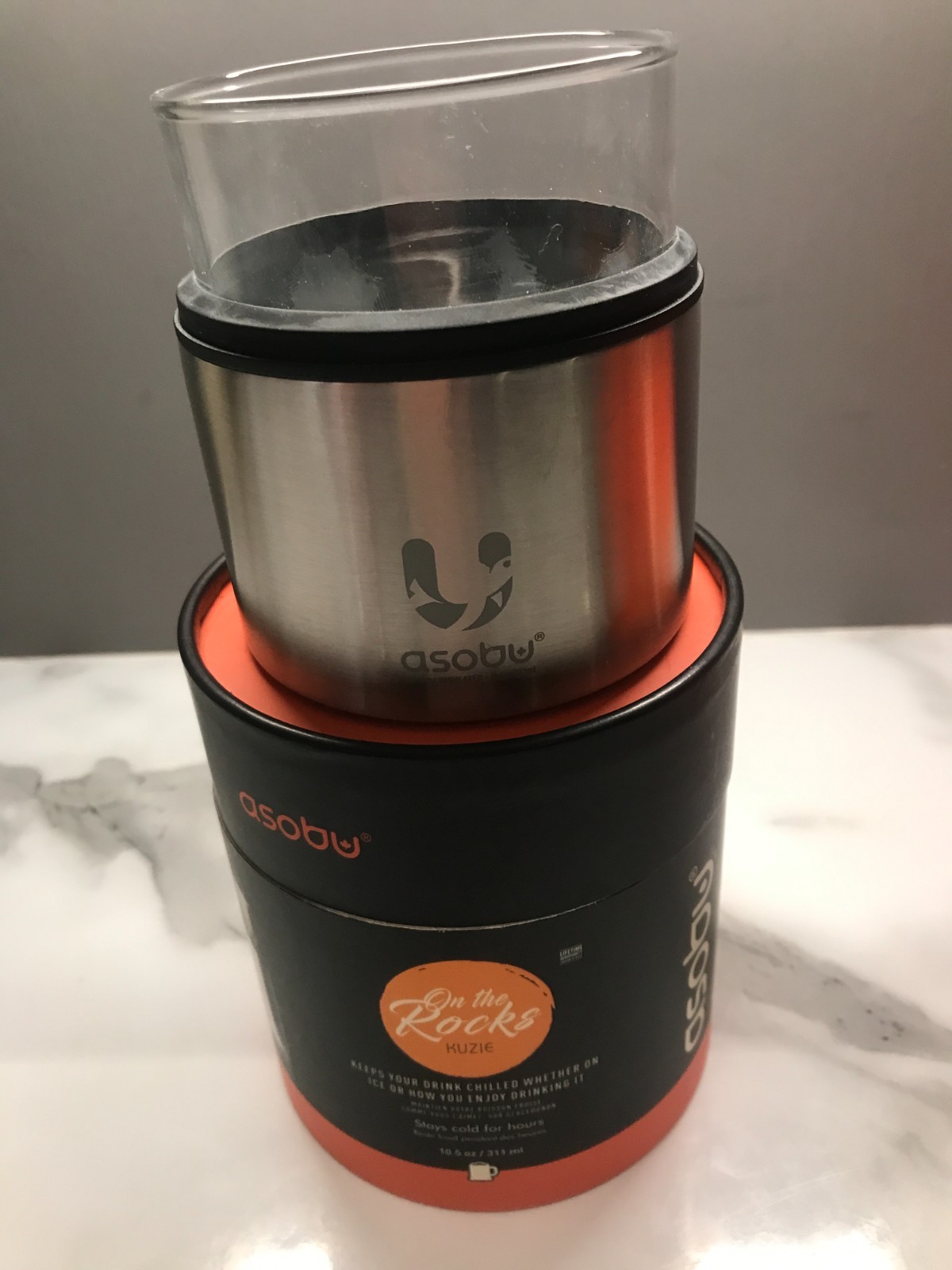 Asobu On The Rocks Kuzie Cooler Glass Insulated Sleeve - New - Silver