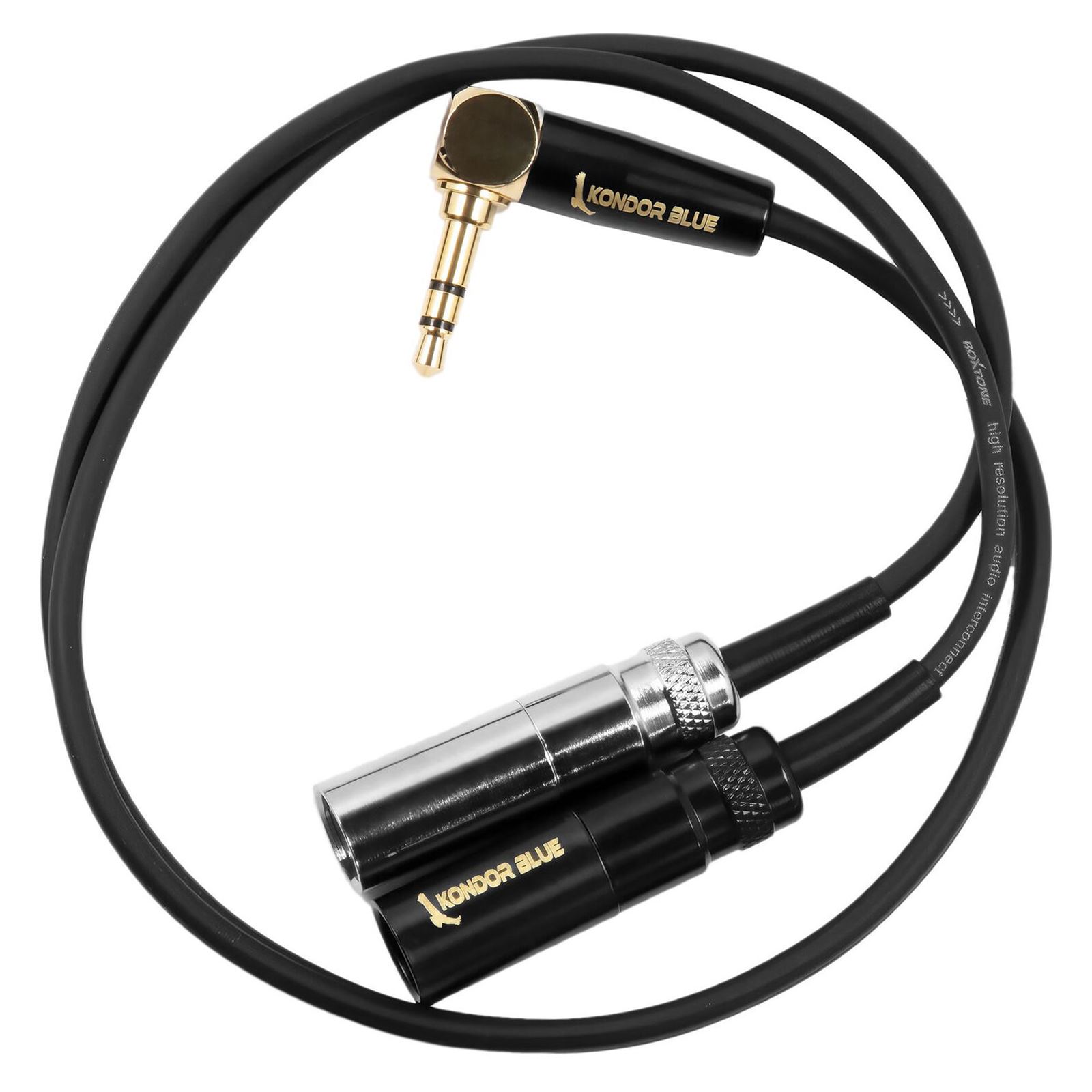 Kondor Blue Dual Mini XLR to 3.5mm Stereo Splitter Right Angle for C70/6K Pro/Rode