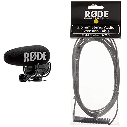 RØDE VideoMic Pro+ Premium On-camera Shotgun Microphone with High-pass Filter, High-frequency Boost, Pad & VC1 Stereo 3.5mm Extension Cable, Headphone