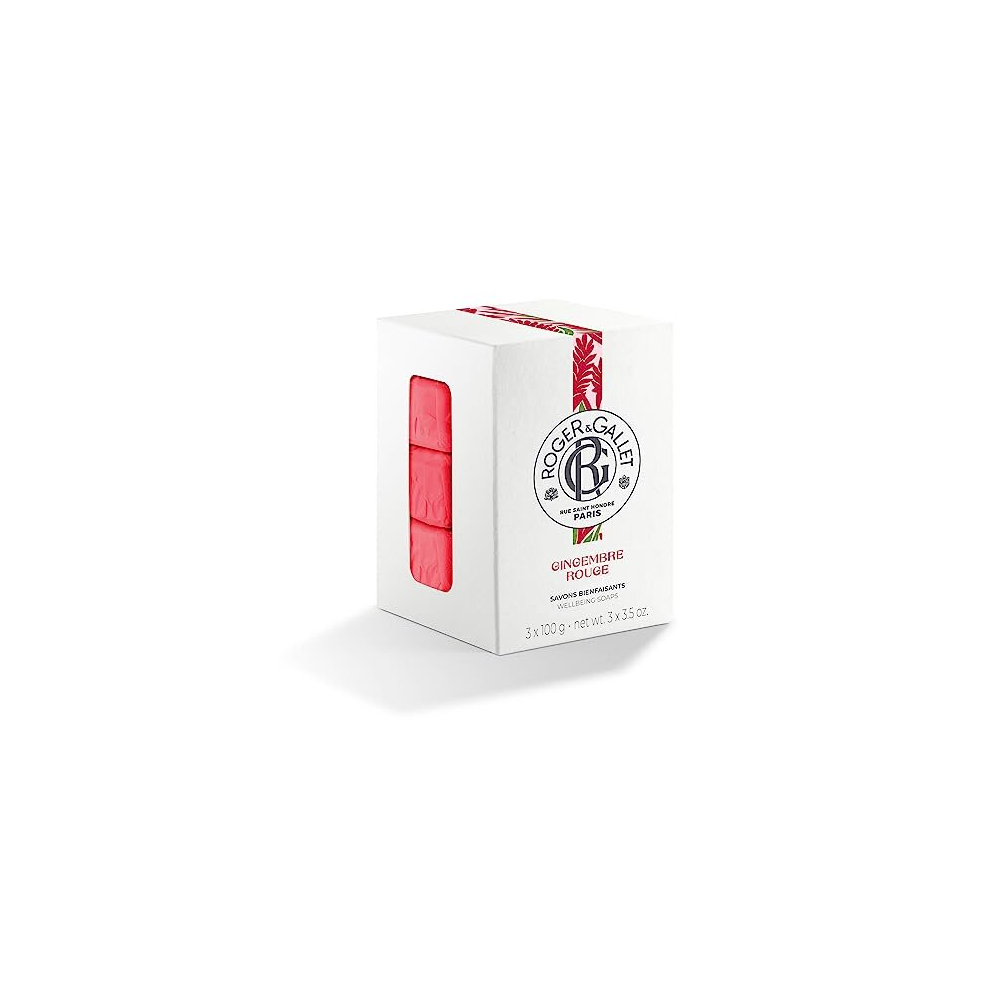 Roger&Gallet Gingembre Rouge Soap 3 x 100g - Candied Ginger & Pink Berry Scent, 80-Hour Infusion, 3 Bars (1003071WW)