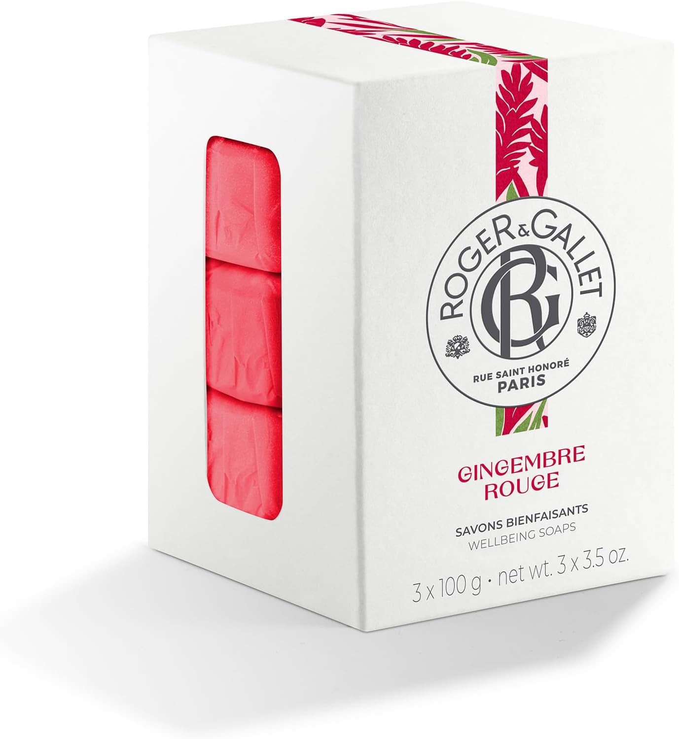 Roger&Gallet Gingembre Rouge Soap 3 x 100g - Candied Ginger & Pink Berry Scent, 80-Hour Infusion, 3 Bars (1003071WW)