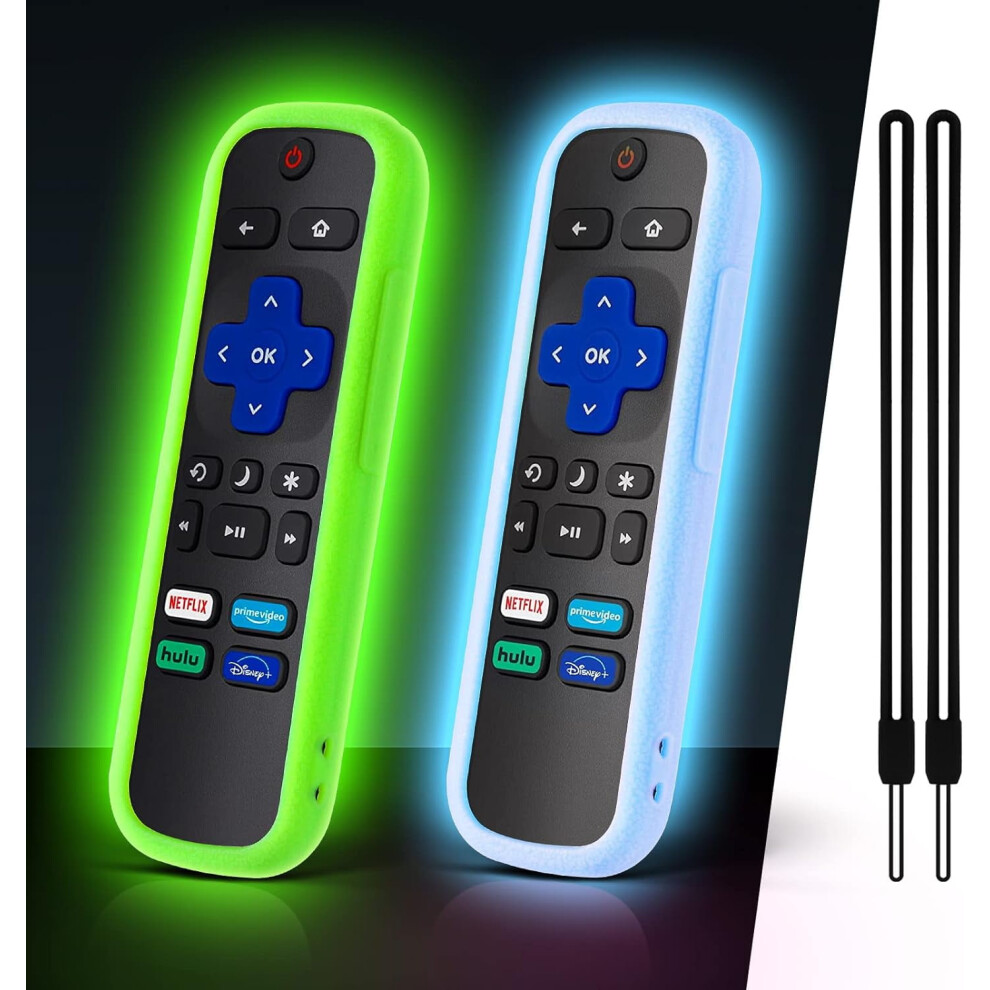 2 Pack Case for Roku /Streaming Stick/Premiere - Silicone Remote Cover for TCL Hisense Roku TV Remote Control Glow in The DarkGreen Blue