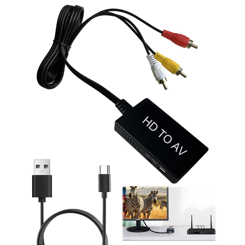 HDMI to RCA Converter, HDMI to AV Adapter with RCA Composite Video Converter, PAL/NTSC Switch Supports for TV Stick, Roku, DVD, PS3, Fire Stick, Old