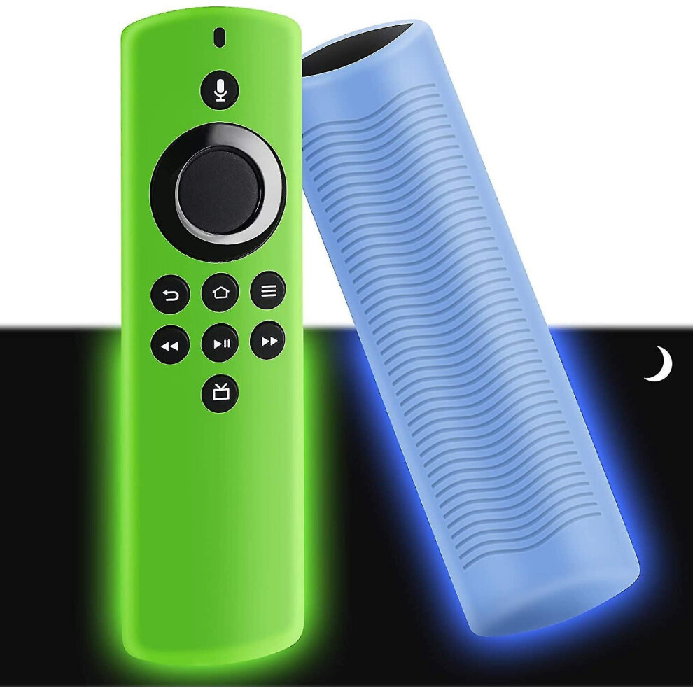 2 Pack Case for Roku /Streaming Stick/Premiere - Silicone Remote Cover for TCL Hisense Roku TV Remote Control Glow in The DarkGreen Blue