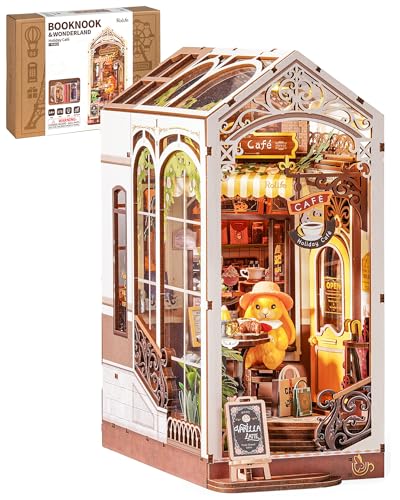 Rolife Book Nook Kits for Adults, 3D Puzzle Rabbit' s Coffee Holiday, DIY Miniature House Kit with Light, Wooden Diorama Booknook for Bookshelf Decor, Creative Christmas Birthday Gift