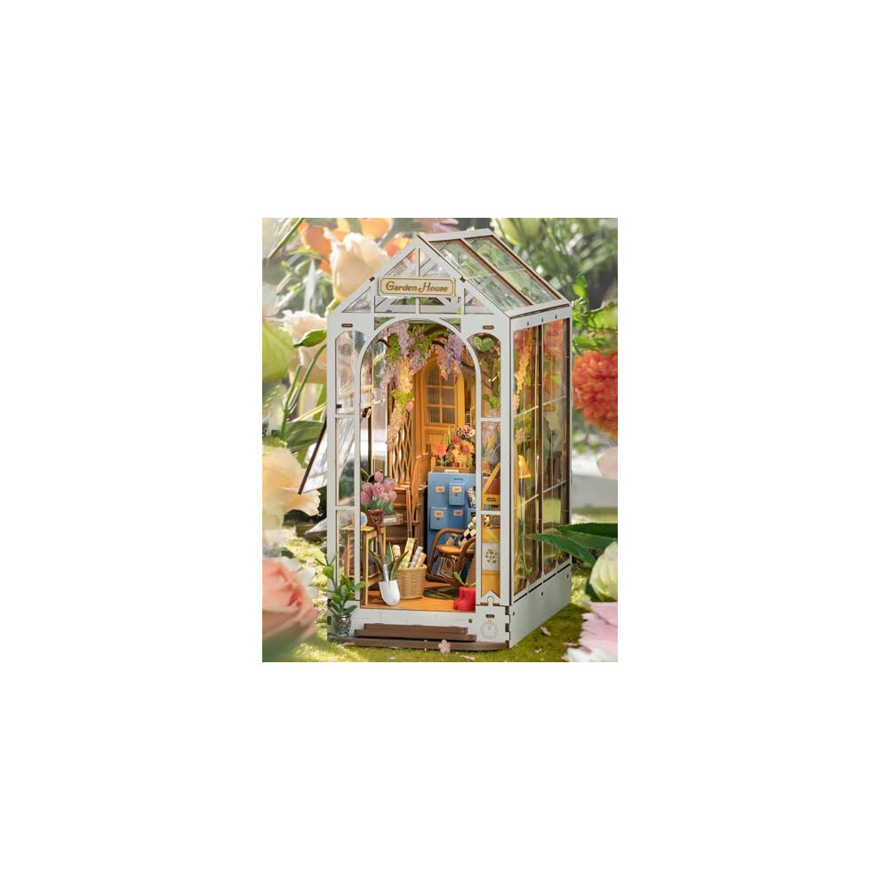 Rolife Book Nook Kits for Adults Gardenhouse DIY Miniature House Kit 3D Puzzles Bookends Bookshelf Decoration Christmas Birthday Gifts for Girls Women