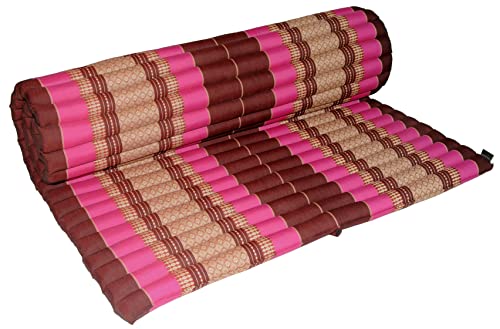 Traditional Thai Kapok Roll-Up Meditation Mattress for Yoga Massage or Relaxation (Burgundy, Brown)