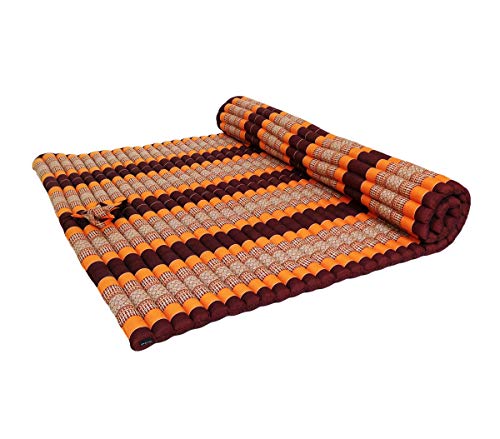 Traditional Thai Kapok Roll-Up Meditation Mattress for Yoga Massage or Relaxation (Brown)