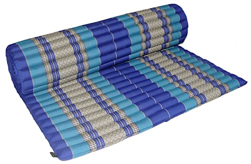 livasia roll-up mat roll-up mattress L wide comfortable - 79x43x1.8″ - Guest bed/mattress for 1 person, Travel bed for the boot outdoors, Thai mat kapok garden balcony hand made (Blue)
