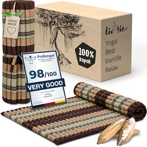 livasia roll-up mat roll-up mattress L wide comfortable - 79x43x1.8″ - Guest bed/mattress for 1 person, Travel bed for the boot outdoors, Thai mat kapok garden balcony hand made (Brown)